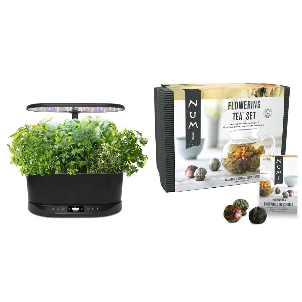 Amazon Com Aerogarden Bounty Basic Indoor Garden With Led Grow Light Black Numi Organic Tea Flowering Tea Gift Set 6 Tea Blossoms With 16 Ounce Glass Teapot Packaging May Vary